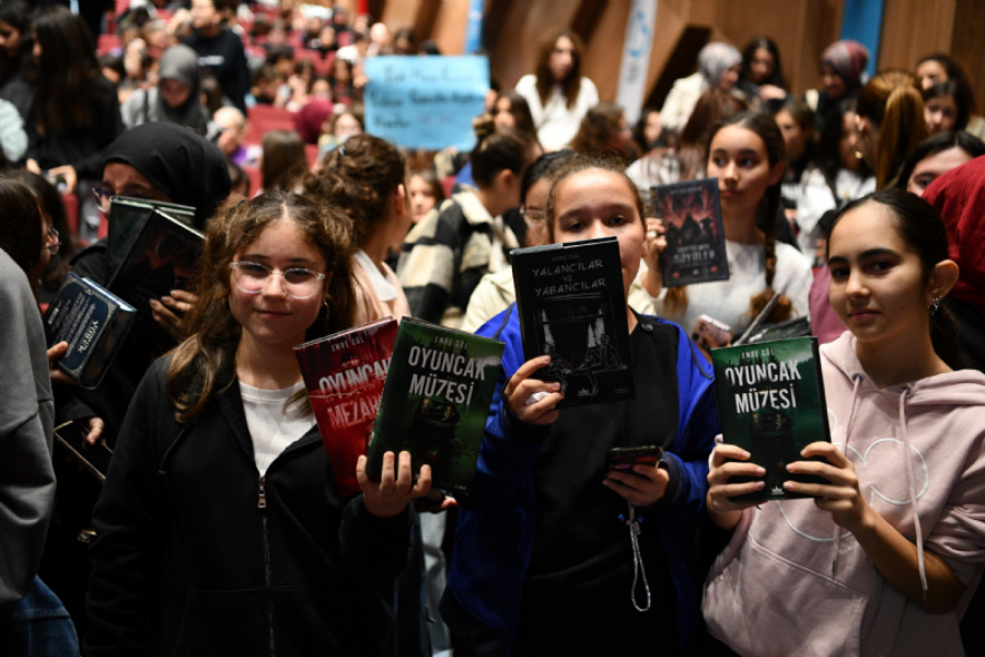 1. Balıkesir Kitap Fuarı, üçüncü gününde de birbirinden kıymetli yazarlarla ve binbir çeşit kitapla okuyucularını buluşturmaya devam etti. İlk üç günde 50 bin kişinin ziyaret ettiği fuar, 26 Ekim Pazar gününe kadar açık kalacak. Fuarın her günü dolu dolu söyleşiler ve imza günleriyle sürüyor. İlk üç günde 50 bin kişiyi ağırlayan 1. Balıkesir Kitap Fuarı, vatandaşların yoğun ilgisiyle devam ediyor. Balıkesir Büyükşehir Belediye Başkanı Ahmet Akın’ın “Balıkesir aileme armağan ediyorum.” diyerek açılışını yaptığı fuarda, birbirinden değerli yazarlar ile binbir çeşit kitap, 26 Ekim Pazar gününe kadar okurlarıyla buluşacak. Balıkesir Büyükşehir Belediye Başkanı Ahmet Akın, Türkiye Büyük Millet Meclisi eski başkanvekili ve aynı zamanda merhum gazeteci Uğur Mumcu’nun eşi Güldal Mumcu ile Belgesel Yönetmeni, Gazeteci ve Yazar Nebil Özgentürk’ün konuk olduğu, özel bir televizyon kanalından canlı olarak yayınlanan “Serhan Asker ile Görkemli Hatıralar” programı ile üçüncü güne merhaba diyen fuar, akşam saatlerine kadar temposunu yitirmedi. FİŞİNİ GETİR KAHVENİ GÖTÜRGün boyunca devam eden imza günü ve söyleşilere vatandaşlar büyük ilgi gösterdi. Fuarın ilk üç günü için geçerli olan, kitap alan vatandaşlara fişlerini göstermeleri karşılığında OnOn Mini’den ücretsiz kahve uygulamasını vatandaşların yoğun isteği üzerine son güne kadar uzatan Balıkesir Büyükşehir Belediye Başkanı Ahmet Akın, hemşehrilerinin fuara gösterdiği ilgiden dolayı teşekkür etti. İMZA GÜNLERİNDE UZUN KUYRUKLAR OLUŞTUAlişan Kapaklıkaya, Alper Akçam, Aslı Arslan, Aycan Sarıahmet, Aylin Torun, Ayşe Kayacan, Aytunç Erkin, Banu Avar, Binnur Şafak Nigiz, Burcu Adsay, Cihat Yaycı, D.N. Archeron, Emine Tavuz, Emre Gül, Fatma Yaşar, Gonca Çakır, Gökçen Koçan, Gönül Ünver, İlkgün Demir, Murat Ağırel, Naim Babüroğlu, Nermin Kaşçı, Nilüfer Açıkalın, Oktay Ferik, Özgün Özen, Serhan Asker, Sinan Meydan, Şener Altun, Şule Avlanmaz, Tarık Tufan, Yüksel Işık, Zeynep Özügenç okuyucularıyla imza gününde buluştu. Vatandaşlar, yazarlara kitaplarını imzalatmak için uzun kuyruklar oluşturdu. SÖYLEŞİLERE BÜYÜK İLGİİmza günlerinin yanı sıra gerçekleştirilen söyleşiler de vatandaşların ilgisiyle karşılandı. Söyleşilerde; Alper Akçam, Cihat Yaycı, Sinan Meydan, Aytunç Erkin, Murat Ağırel, Banu Avar, Naim Babüroğlu da okurlarıyla buluştu. Gün sonunda İzmir Klarinet Kuartet klasik müzik konserine de vatandaşlar büyük ilgi gösterdi. VATANDAŞLAR FUARDAN MEMNUNKitap Fuarı’nı çok güzel bulduğunu ve sevdiği birçok yazarın fuarda yer almasından dolayı duyduğu memnuniyeti dile getiren Yağmur Önder, “Dün gece heyecandan uyuyamadım. Buraya da hızlı geldim. Sevdiğim yazarlara kitabımı imzalattığım için çok mutluyum. Bizleri düşünerek bu fuarı düzenleyen Balıkesir Büyükşehir Belediye Başkanımıza teşekkür ederim.” dedi. Eflin Önder, Balıkesir’de böyle bir kitap fuarının açılmasından dolayı gurur duyduğunu söyleyerek “Balıkesir Büyükşehir Belediye Başkanımız Ahmet Akın’a çok teşekkür ediyoruz.” dedi. Kitapseverler için çok güzel bir fuar olduğunu ifade eden Şule Yamanç, “Fuarın açılacağını duyduğumda çok heyecanlandım. Şimdi buradayım, aldığım kitapları imzalatıyorum. Ortam çok güzel. Emeği geçen herkese teşekkür ederim.” dedi. Ceren Arslan, 1. Balıkesir Kitap Fuarı’nı çok beğendiğini söyleyerek “Fuarı düzenleyen Balıkesir Büyükşehir Belediye Başkanı Ahmet Akın’a teşekkür ederim. Sevdiğim birçok ünlü yazarla bir araya gelme fırsatı buldum. Fuar çok kalabalık, her şey çok güzel.” dedi. Yorumlar