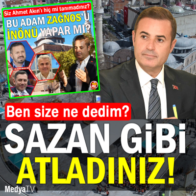 Daha olay ilk patladığı gün ben size ne dedim? “..Ahmet Akın’ı 1.5 yıldır hiç mi tanıyamadınız? Bu adam Zağnos’u İnönü yapar mı?..” dedim ama hepiniz sazan gibi atladınız! N’oldu? Adam ters köşe yaptı! Zağnos Paşa Meydanı artık resmen “Zağnos Paşa Meydanı” oldu. İŞTE O HABER